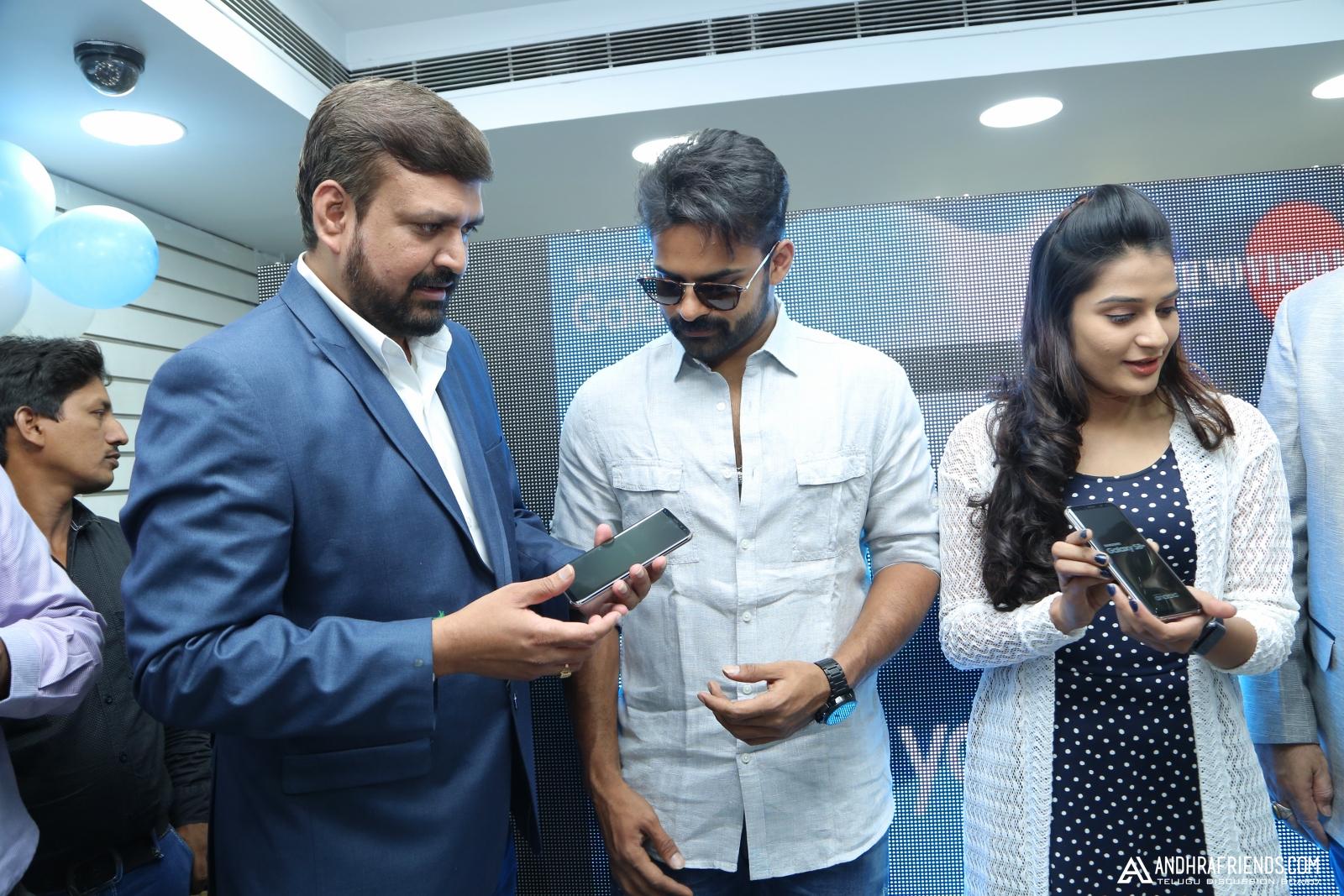 Sai dharam launches samsung s8plus at technovision mobile store