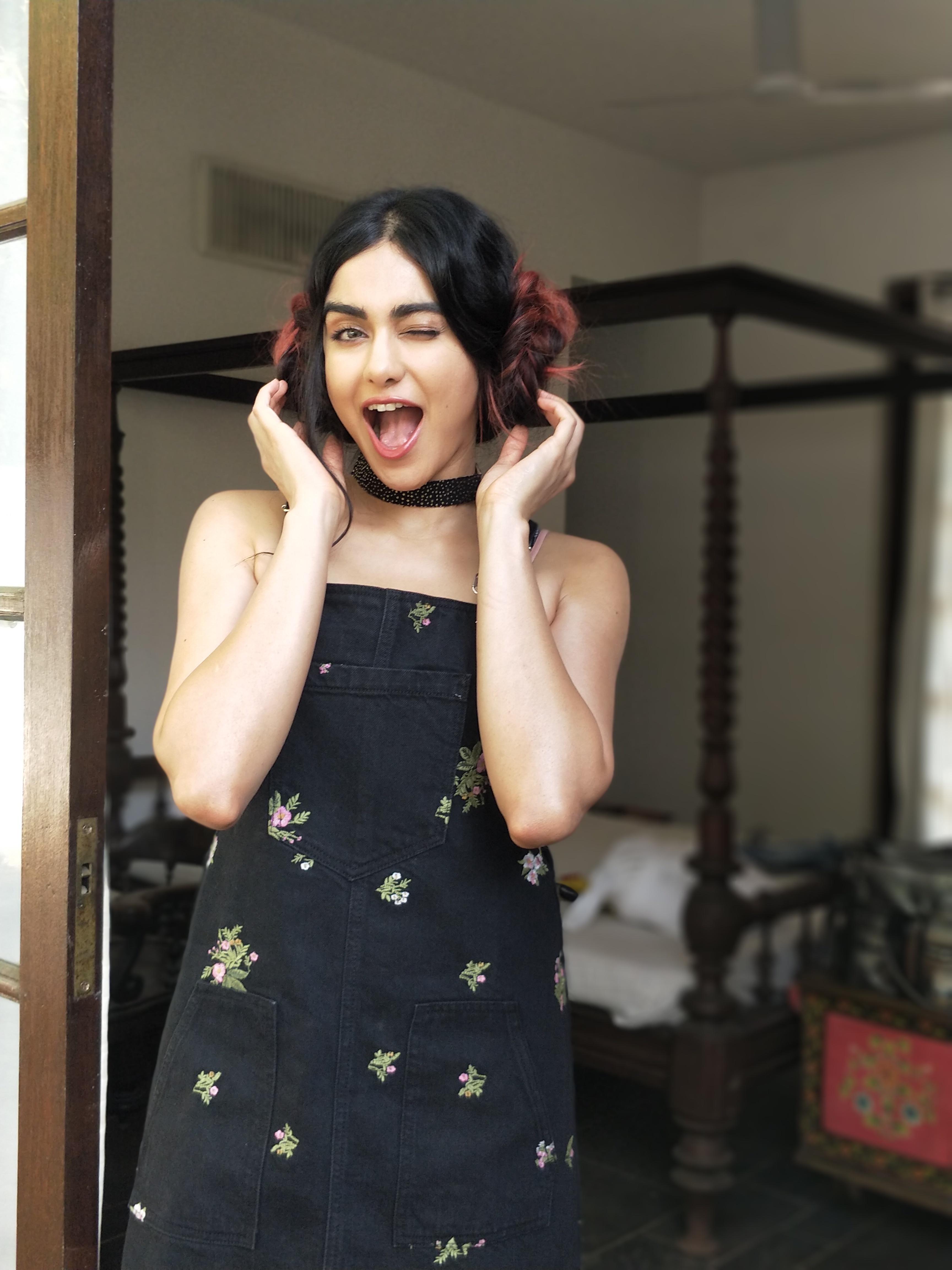 Gorgeous Adah with a quirky hairdo behind the scenes of an ad campaign