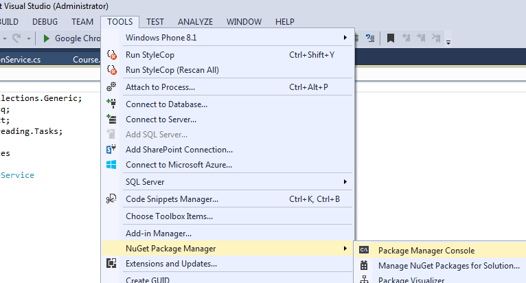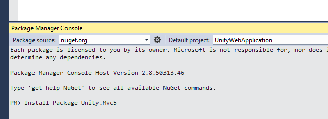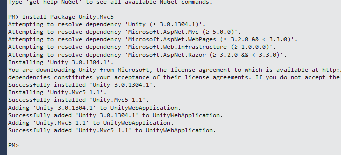 To install Unity.Mvc5 Library using nuget, we have to go to Package Manager Console and execute the following command.
