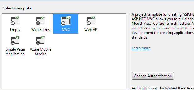 In this example I'm using Visual Studio 2013 and let's start by creating sample MVC web application.