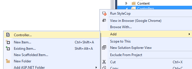 Now we are going to display these institution and course information in our web application. I'll add new Empty Controller called Institution to our MVC application by right clicking Controllers folder.