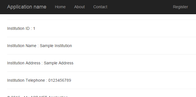 It's done, you can run your application and try /Institution/Index. You should get following output.