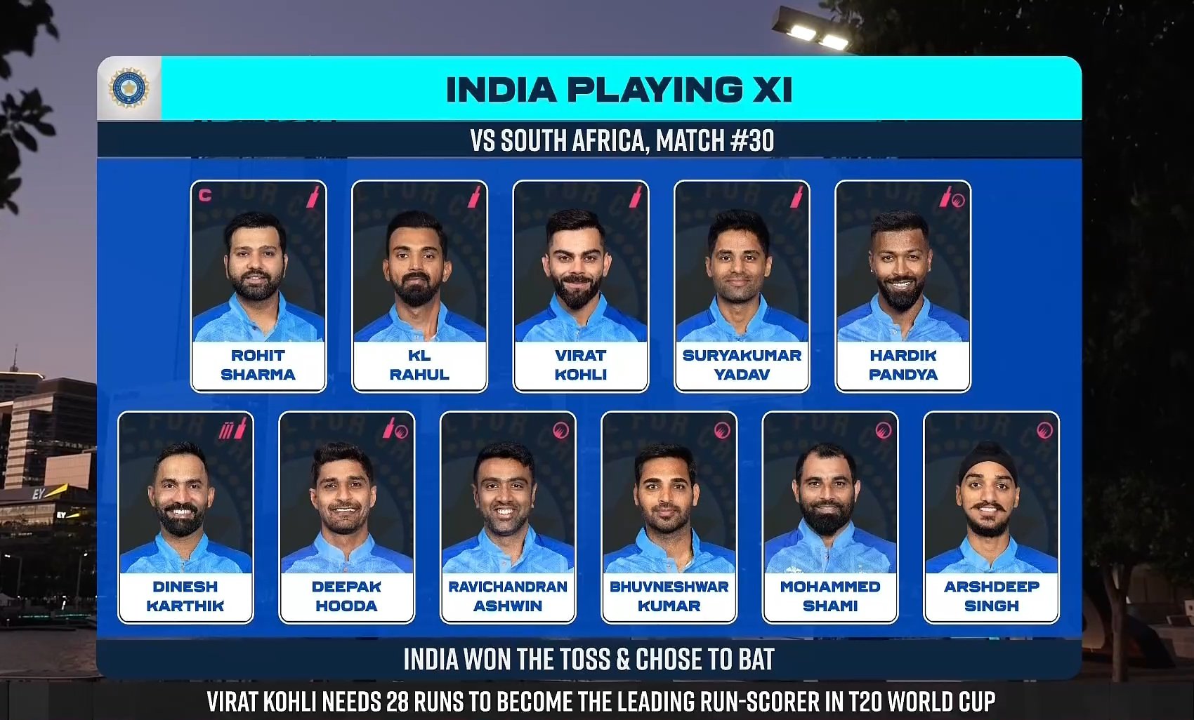 COIN TOSS India won the Coin Toss, and have elected to bat first